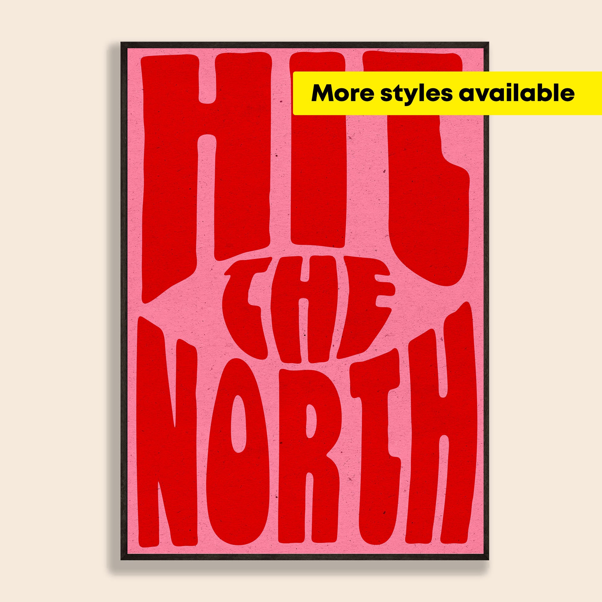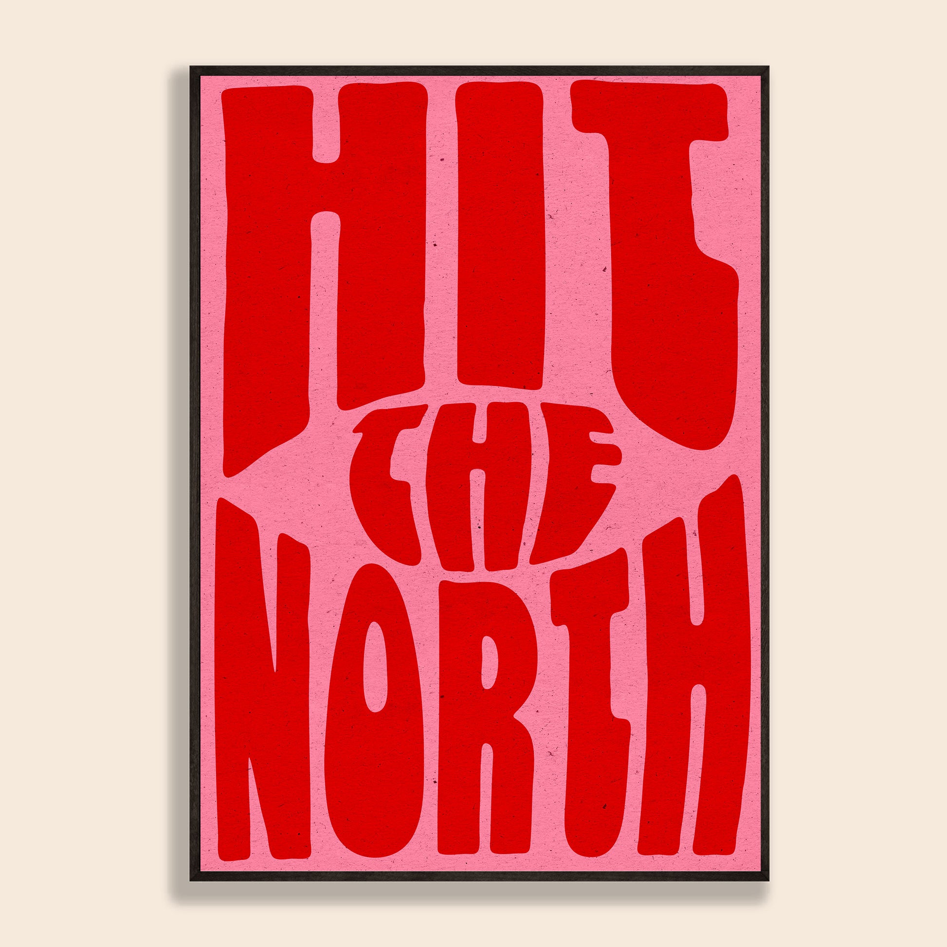 Hit The North, a unique print featuring retro lettering and a vintage paper grain texture.